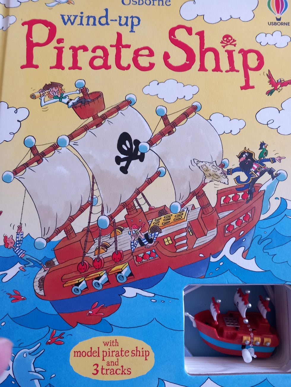 A lovley illustrated book with lots of pictures with bedded tracks on the pages whatch the pirate ship go round the island