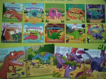 Meet the different Dinosaurs and follow their adventures their is lots of illustrations and text. With simple stories that will delight little dinosaur fans.